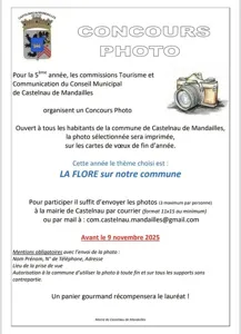 Pour participer il suffit d'envoyer les photos (3 maximum par personne) à la mairie de Castelnau par courrier (format 11x15 au minimum) ou par mail à : com.castelnau.mandailles@gmail.com avant le 9 novembre 2025.