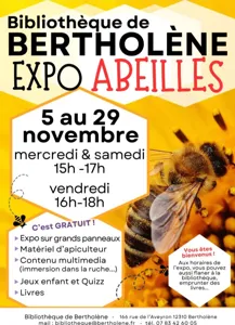 Ces indispensables butineuses sont à l'honneur à la Bibliothèque de Bertholène au mois de novembre avec une expo de panneaux, des livres sur les abeilles, du matériel d'apiculteur, des quizz, des jeux pour les enfants...